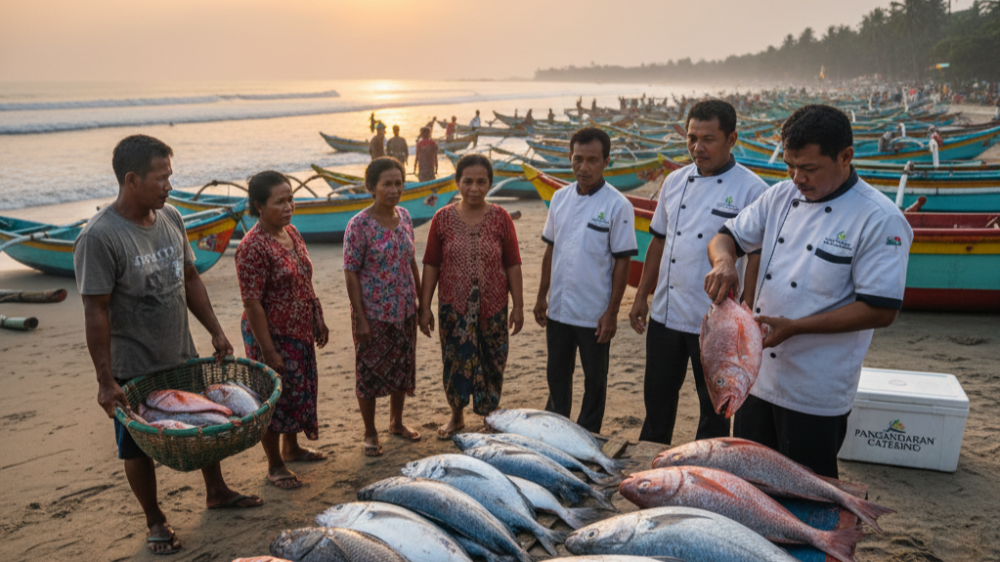 Di sinilah Pangandaran Catering mengambil peran. Kami melakukan "perburuan" ikan segar setiap pagi untuk Anda. Dengan jaringan langsung ke para nelayan lokal, kami memastikan hanya ikan kualitas terbaik yang masuk ke dapur kami untuk kemudian diolah oleh tangan-tangan terampil menjadi hidangan istimewa.
